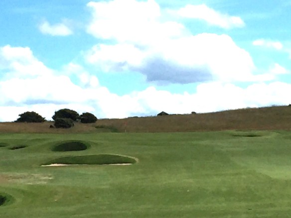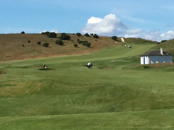 This is followed by Queen’s Head where you get your second breathtaking view of the outward nine staring down what looks like the Olympic downhill at Kitzbuhel to a green complex at the bottom of the world below. The challenge here is to control the run out of your ball on both shots which take full advantage of what gravity and tightly mown bent grass fairways provide.