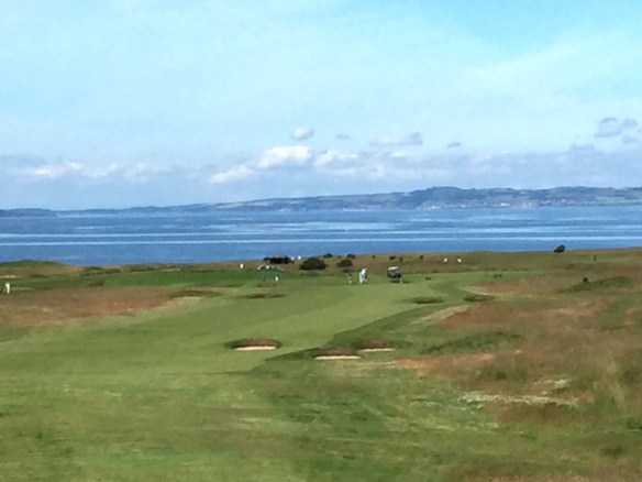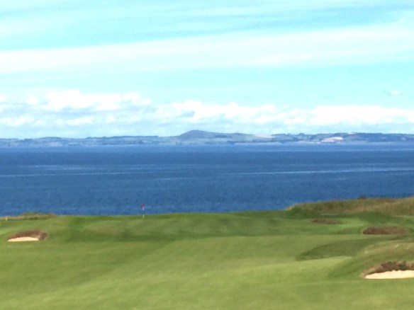 What has survived is a wonderful piece of golf architecture land management on one of the most challenging topographical canvasses in this region. Kind of reminds one of the back nine at Tralee without the trolls. In spite of the massive elevation changes they routed the holes straight up and down the inclines in such a way that there are almost no side hill lies to be considered all day. These same elevation changes provide startlingly beautiful vistas from the high points on the property where you take in views of the vast farmlands below and the long shoreline of the Firth of Fourth on its way up to Elie and Crail.