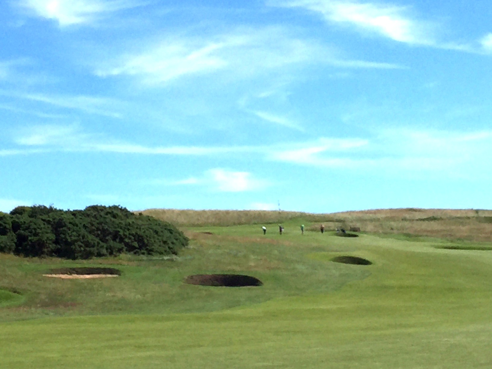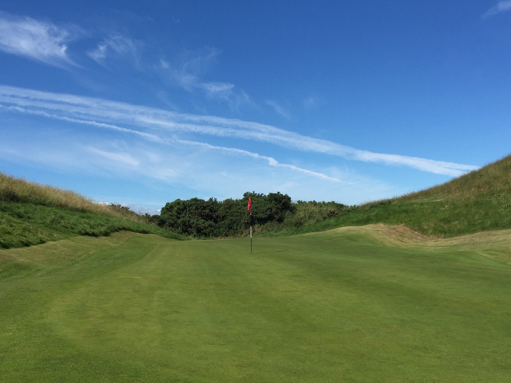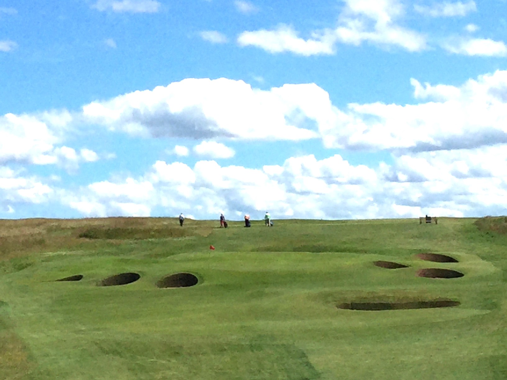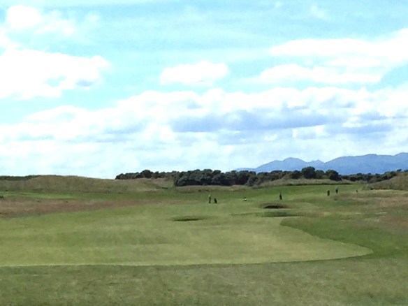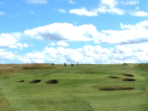 The first of the four great short holes at Gullane 1 is coming up. Only a short to mid-iron into is required into a raised coffee table of a green complex segmented front-to-back. If the wind is at your back controlling the roll out once on the green is a real chore.