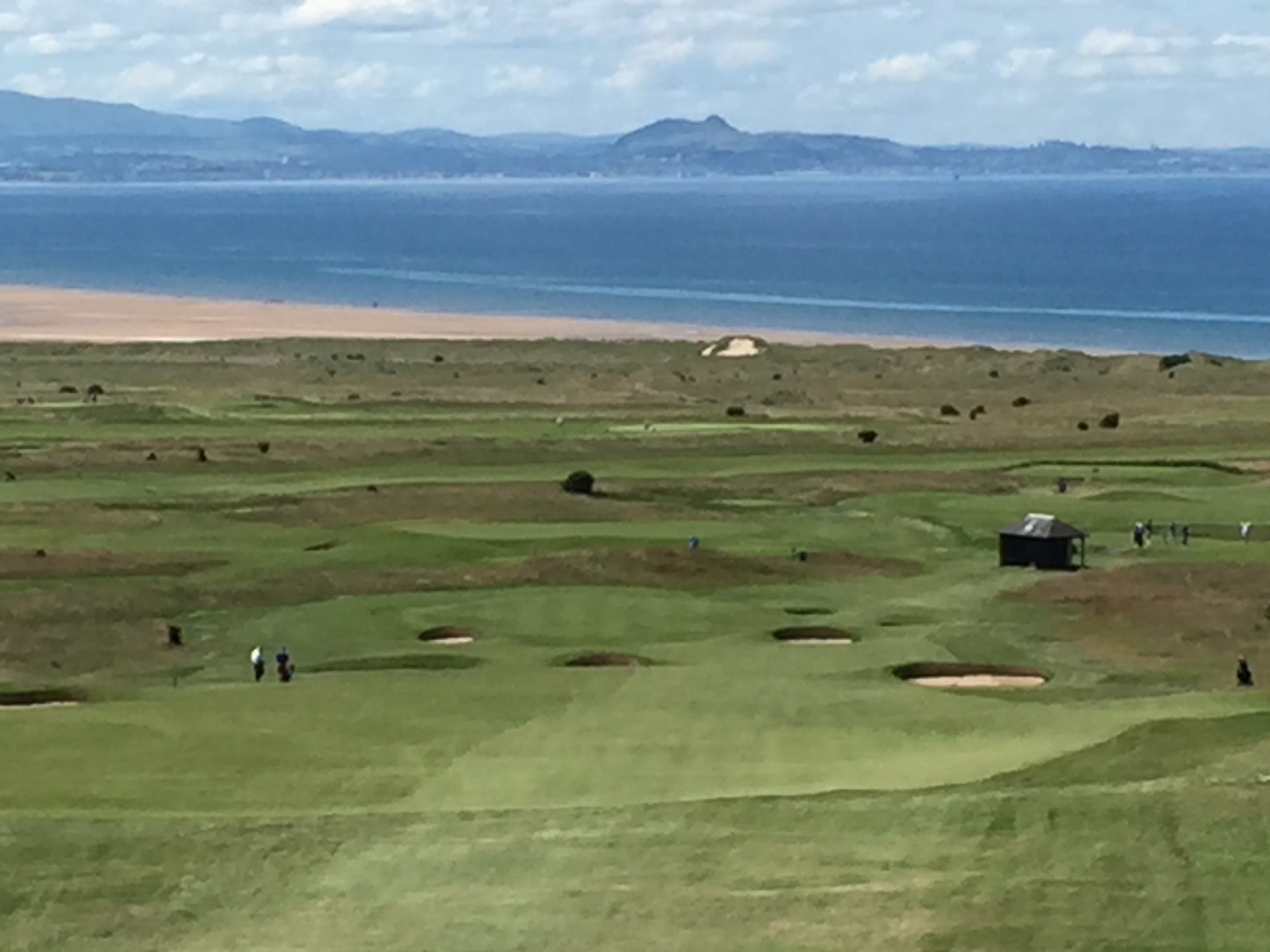 The first and the finishing holes are the only two on-level holes you will see all day. It is a comforting handshake to start and finish what will be an exhilarating rollercoaster trek up and down the steep contours of Gullane Hill.