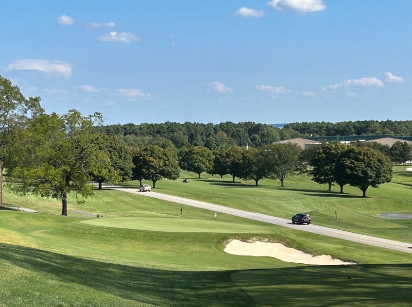 17 NAGC Par 3 Published September 24, 2023 at 2016 × 1504 in 17 NAGC Par 3 17th green does not present much safe harbor so figure the downhill and the wind and commit to the middle of the putting surface.
