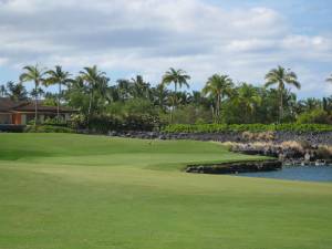 The signature feature of this course is that it was built on the black lava fields of the eastern Kohala Coast and Jack’s goal was to meld the holes into the up and down flow of the lava fields. The lava creates a harsher version of the gorse or the heather on the Scottish courses setting a stark visual outline on every hole for the lush green of the Tiff Bermuda fairways and greens. If you look up the eastern horizon to the mountains from which this came, you do get a real sense of the topographical flow of the element and how it defines the character of this course.