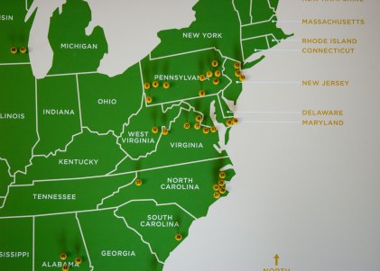 The map comes with your choice of color matched numbered push pins and an area on the bottom to write in up to 75 corresponding golf destinations. Plot the pins with his golf destinations, like one of those war maps showing the Normandy invasion, and he has an artful bit of bragging rights for all his friends to see.