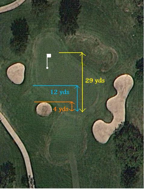As he says in this part, it is not only knowing distances to the center of the green that matters, you need to know the distance to cover the front of the green, fly any trouble between you and the flag, and not to go too long as to bring in problems behind the green. It is not distance to the flag you must determine but distance to where you want the ball to land to give you an aggressive putt at the hole.