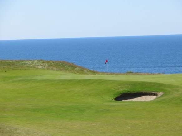 Pretty As A Painting-with all the seaside elements-furry mounds, sod-wall bunker, sea grass, and wind exposure.