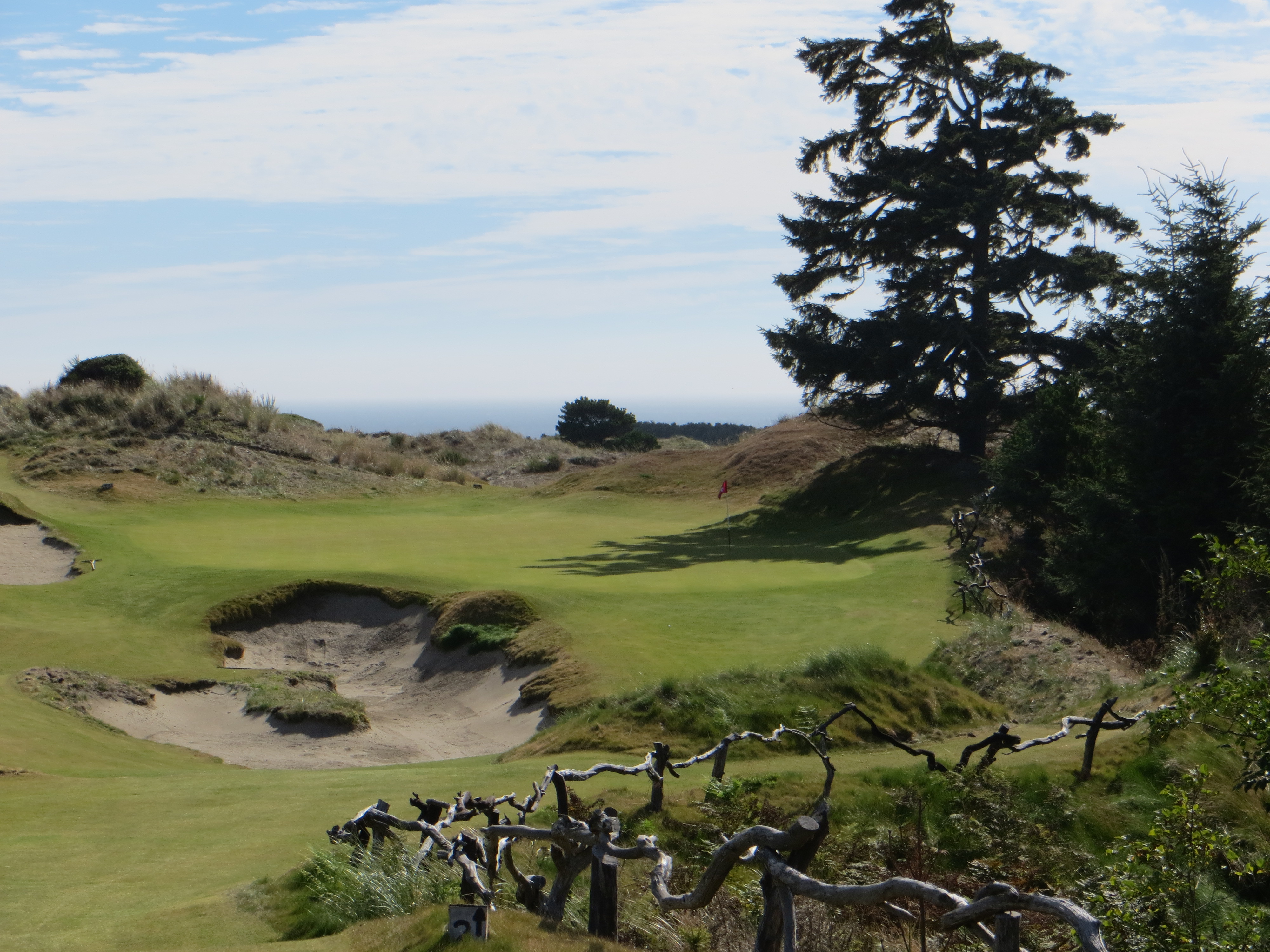 Part II of Coore-Crenshaw Day was a lovely stroll of the 13-hole, yes 13 holes, Bandon Preserve Par 3 Links Course. All the links elements-dunes, fierce bunkers, wild greens, and, of course, the wind. No designated tees but plenty of options on each hole to pick from.