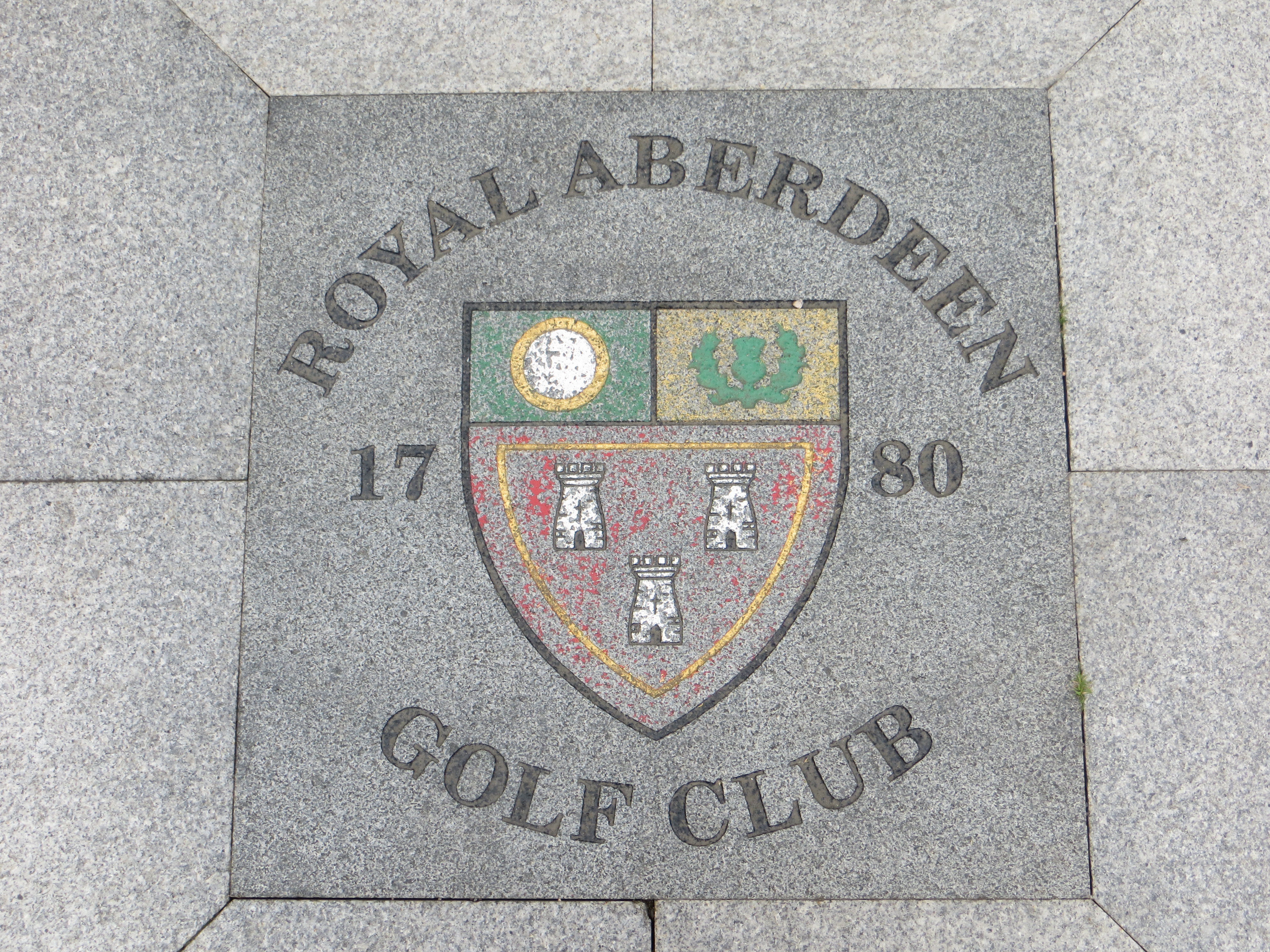Aberdieen CrestWe drove the 30 miles from Cruden Bay to Royal Aberdeen in a driving Scottish mist fearful that the rest of the day would be all wet grips and rain gear.  But to our amazement the skies cleared as we pulled into the parking lot and it would be an afternoon game unfettered by such accommodations.