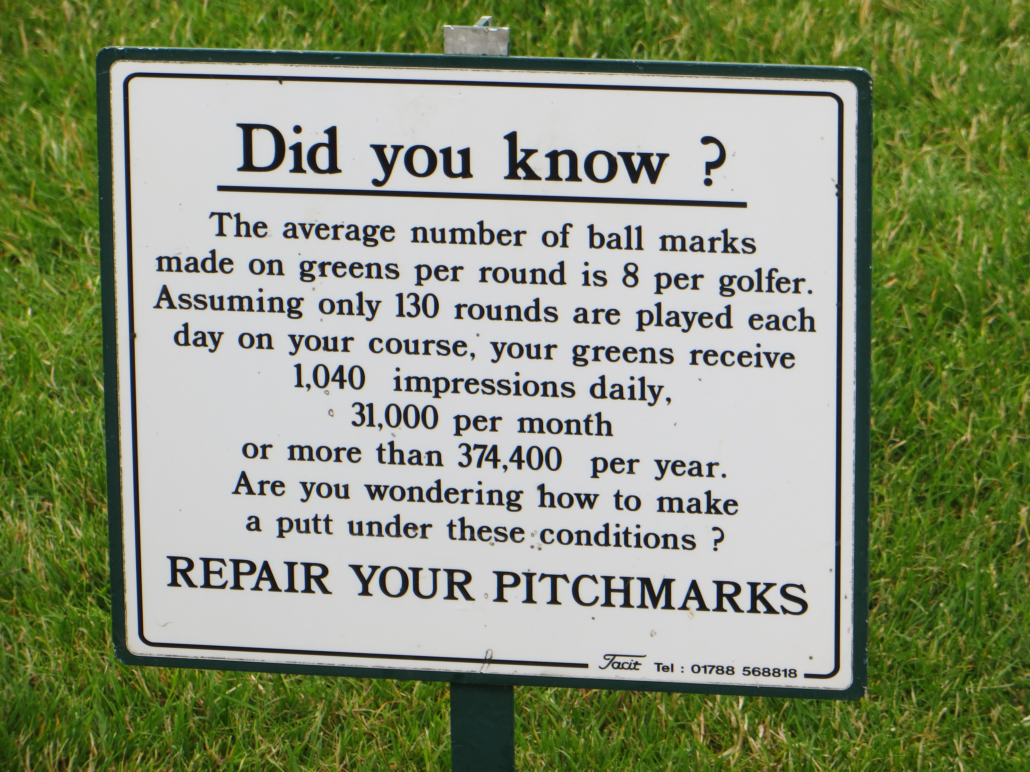 PitchmarksA not so gentle reminder next to the first teeing ground that care and maintenance of a Royal is a community effort we all must embrace.