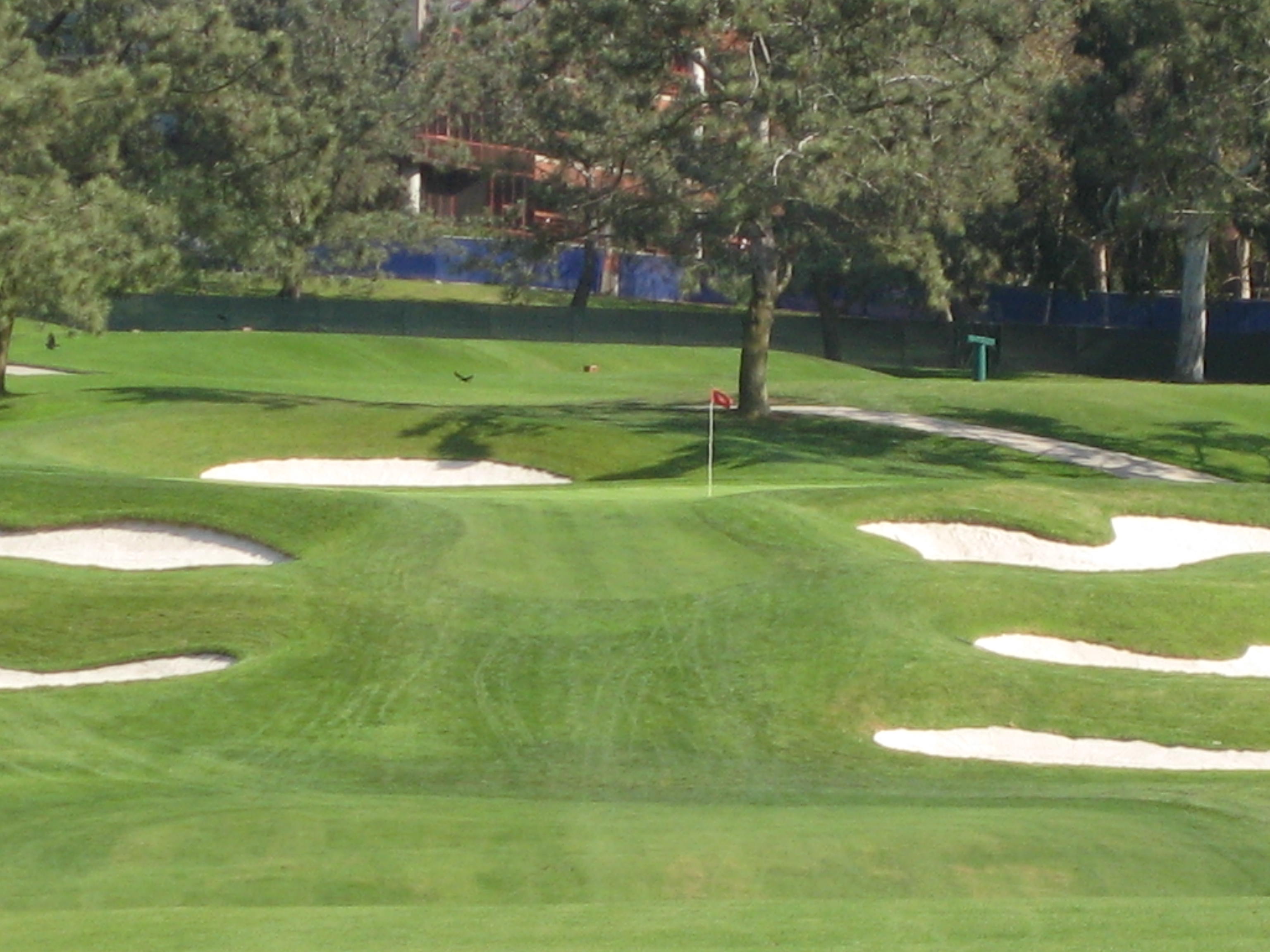Apparently the shrill voices of the media powers did not go unheeded-they wanted to make sure that Sunday was not a demolition derby broadcast. As such the set up on Sunday was much more forgiving-a little water on the greens and fewer Clark Kent phone booth pin positions suddenly made for a sporting afternoon at Torrey Downs. By the time the last group reached the fifth tee 19 guys were within three shots of the lead.