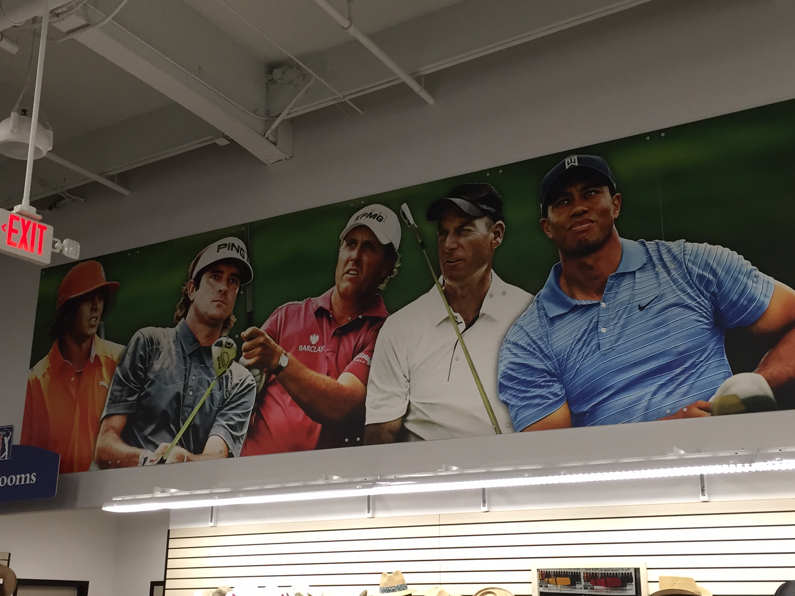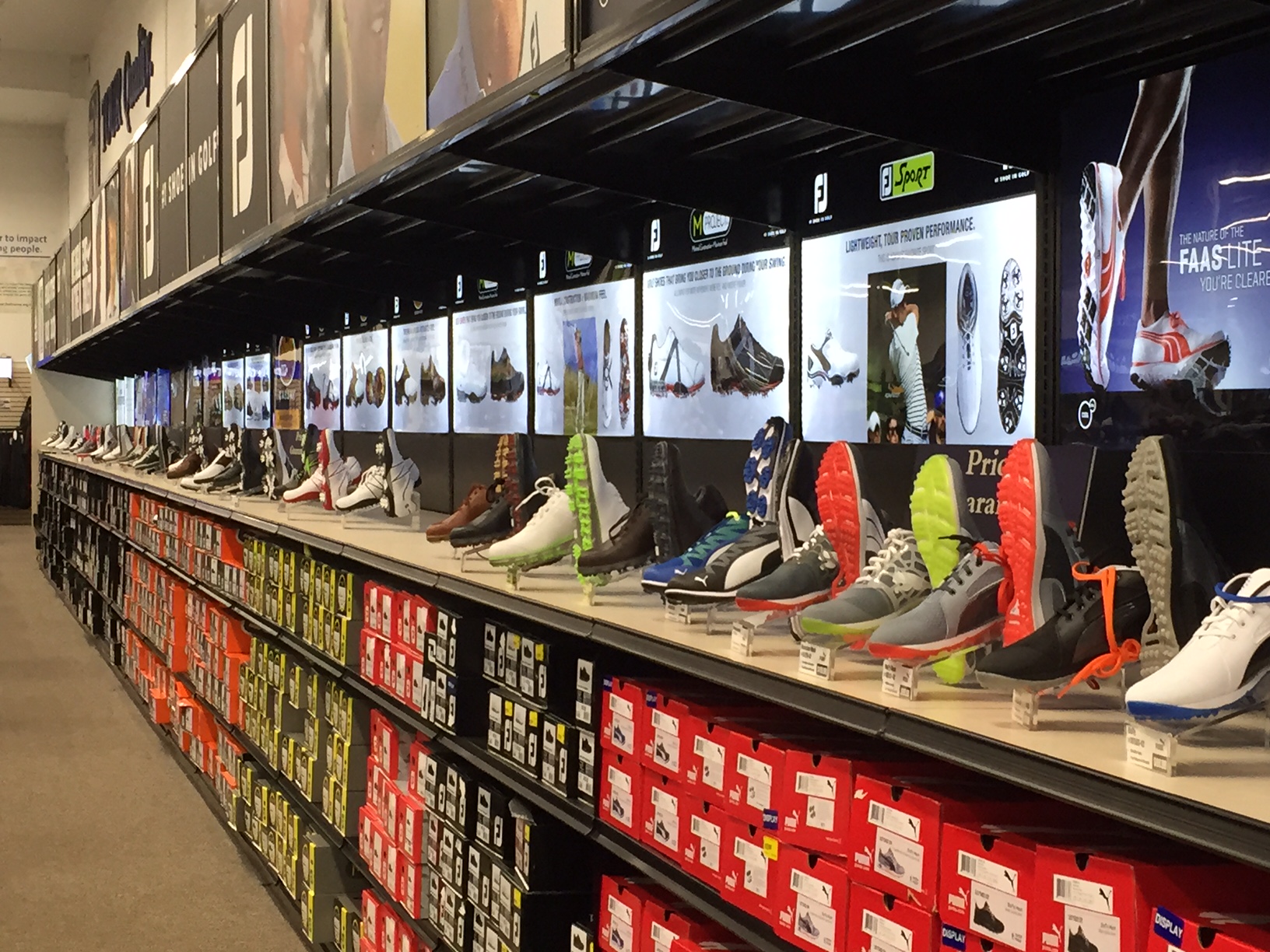 Store FrontWe are talking falling into the Dorothy rabbit hole for a narcotic golfer in that it has every brand of everything men’s and women’s-shoes to clothing to equipment to fitting centers and even instructional bays. Titleist, Nike, Footjoy, Cobra, Ping, Mizuno….you name the brand and product they have it. This is no hit or miss bargain superstore it is the current products from all these lines in full inventory of sizes and colors.  Cannot speak for the pricing across the board but there were plenty of “Specials” and sale signs throughout each department.