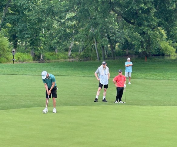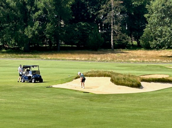 Kipp’s distance control on 14 was astounding settling this 100 yard pitch to 6 feet between the bunker’s edge and the hole for another birdie