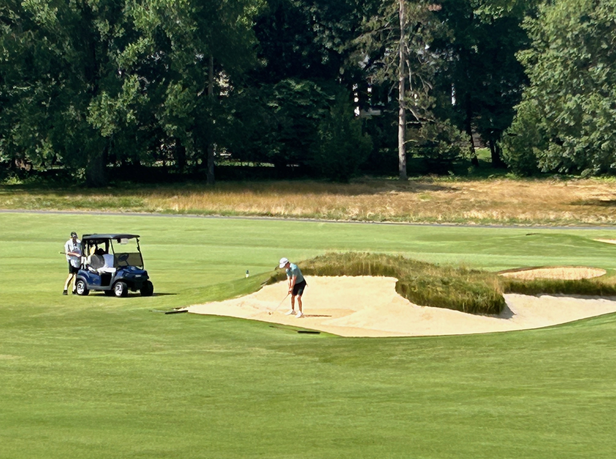 Eventual men’s champion Kipp Popert extricates himself from the shared fairway bunker constellation between the 2nd and the 6th hole