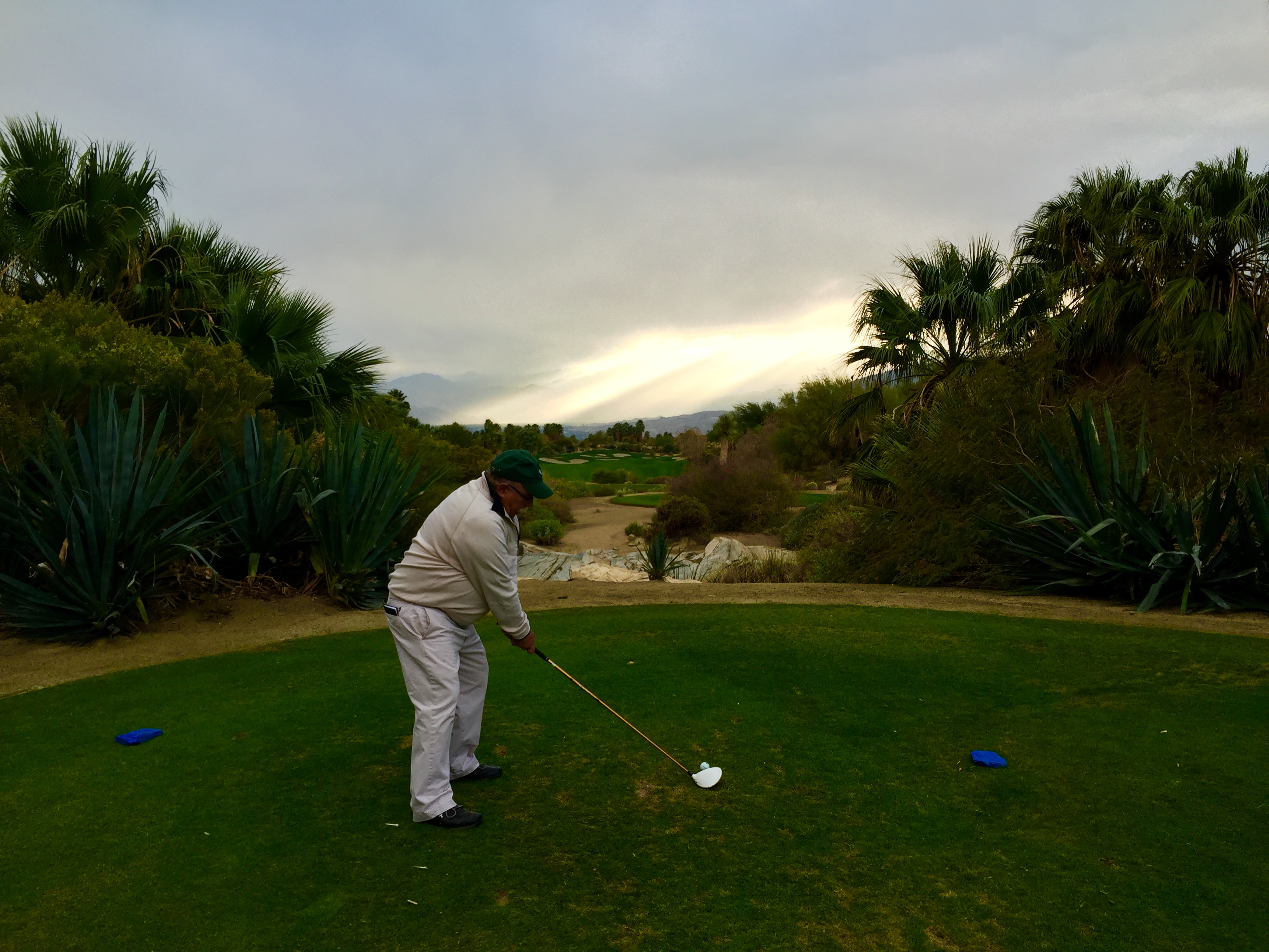 Our ninth is a 485-yard behemoth Par 4 from the tips with OB right and lots of tree trouble left, scorecard wrecking double-bogies lurking for those without judgment. Three wood to 220, long iron safely to the front left apron, a pitch and a couple of putts Denny smartly accepted a dropped shot to finish at 6-under tied with Billy Hurley for the top spot of the day.