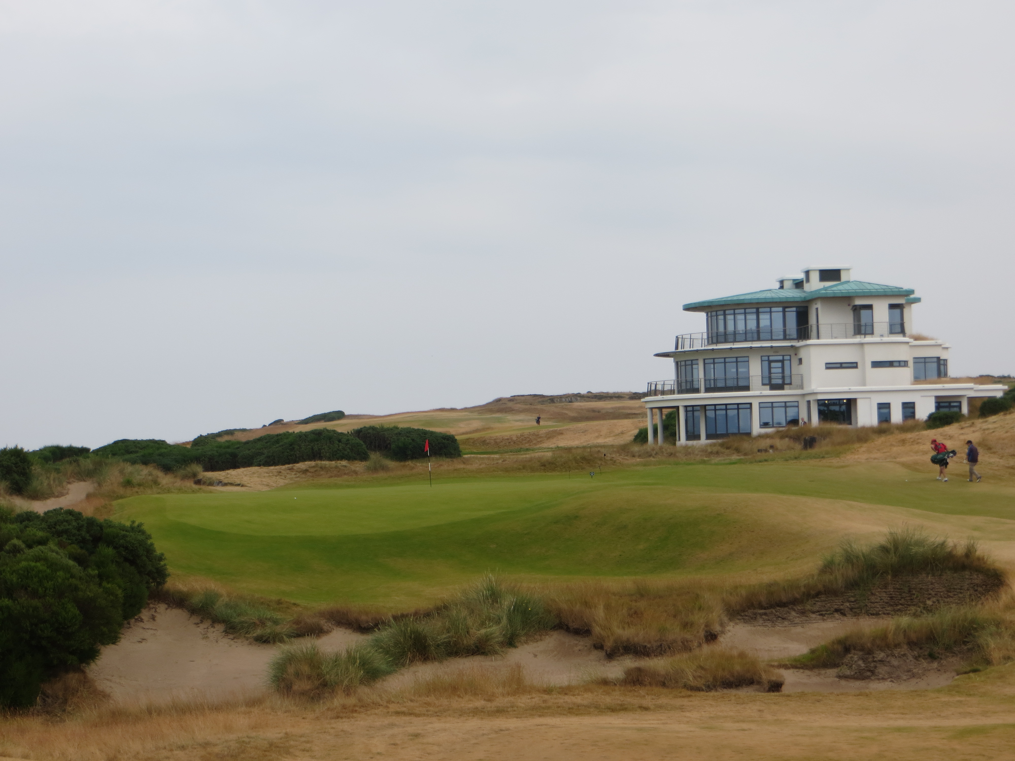 The beginning of the harrowing fabulous five provides a real eye opener in the Spectacle Bunkers you must traverse on your approach shots. These two are a high rise sheep condo development if I have ever seen one.