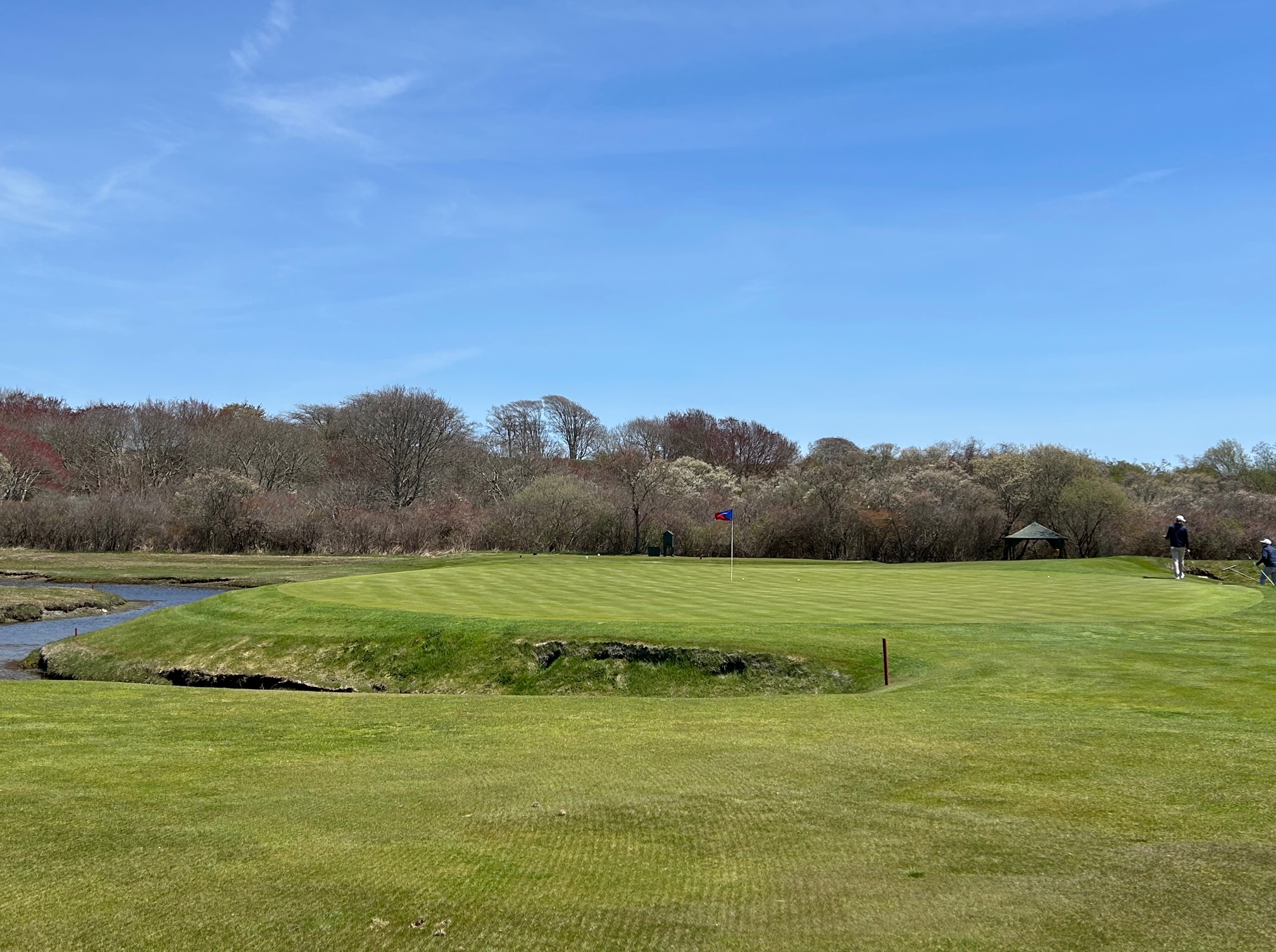 One quirky thing I noticed is the sequential color of the tee markers from longest to shortest are Red, White, and Blue which is the opposite of what you would find at most places. I wonder if this was an intentional jab in the ribs at the traditional clubs of the day.