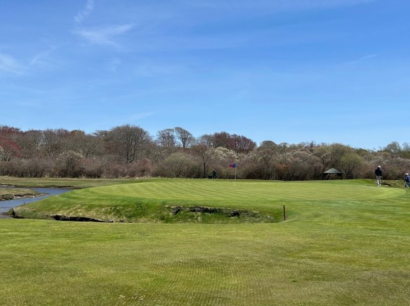 The second handicap index hole of the day is a sweeping dogear right Par 4 which can play a three shotter if the wind is in your face. The green complex is particularly interesting set into the foot of a low hill to the right featuring a two levels and a steep false front to boot.