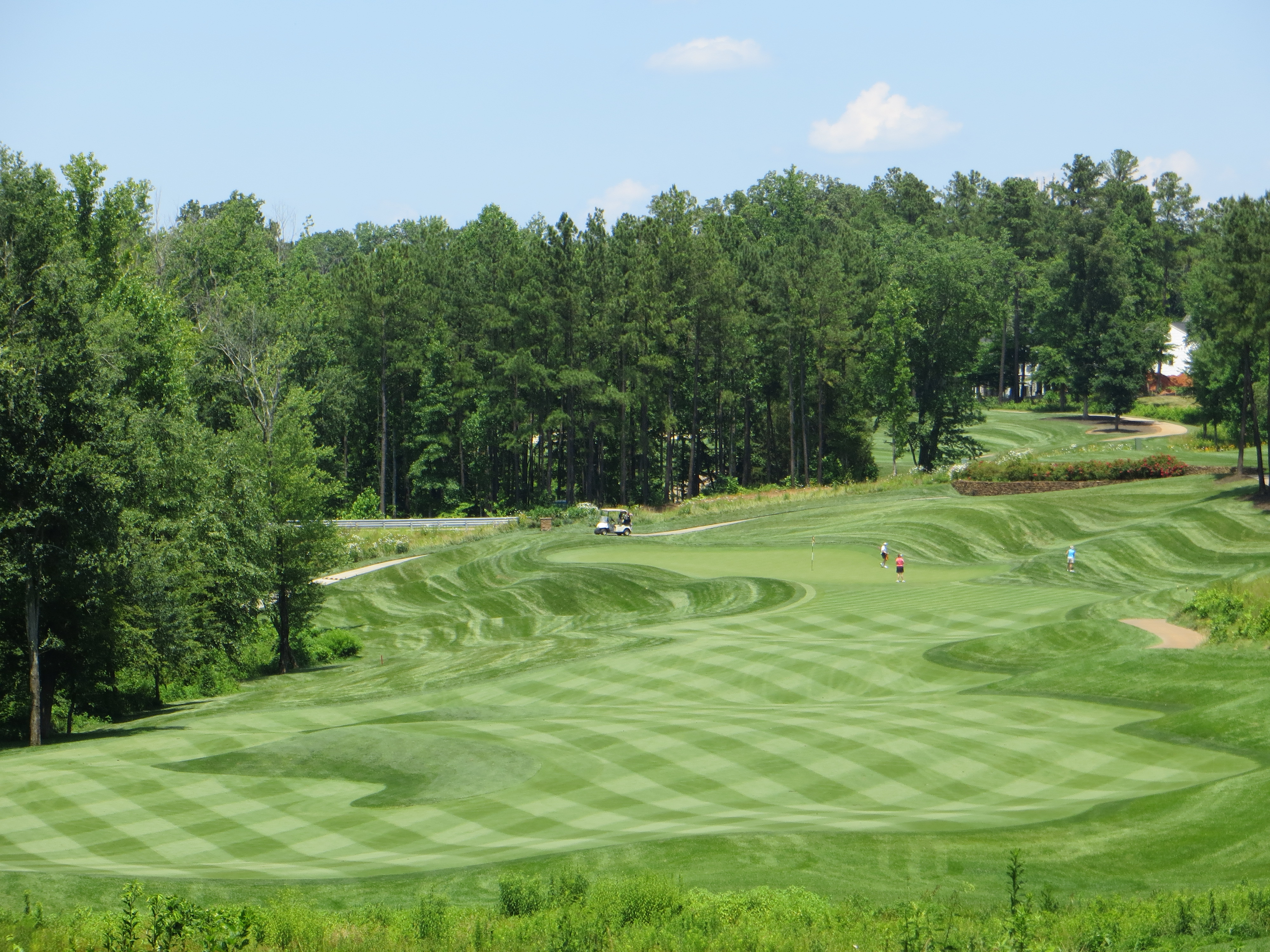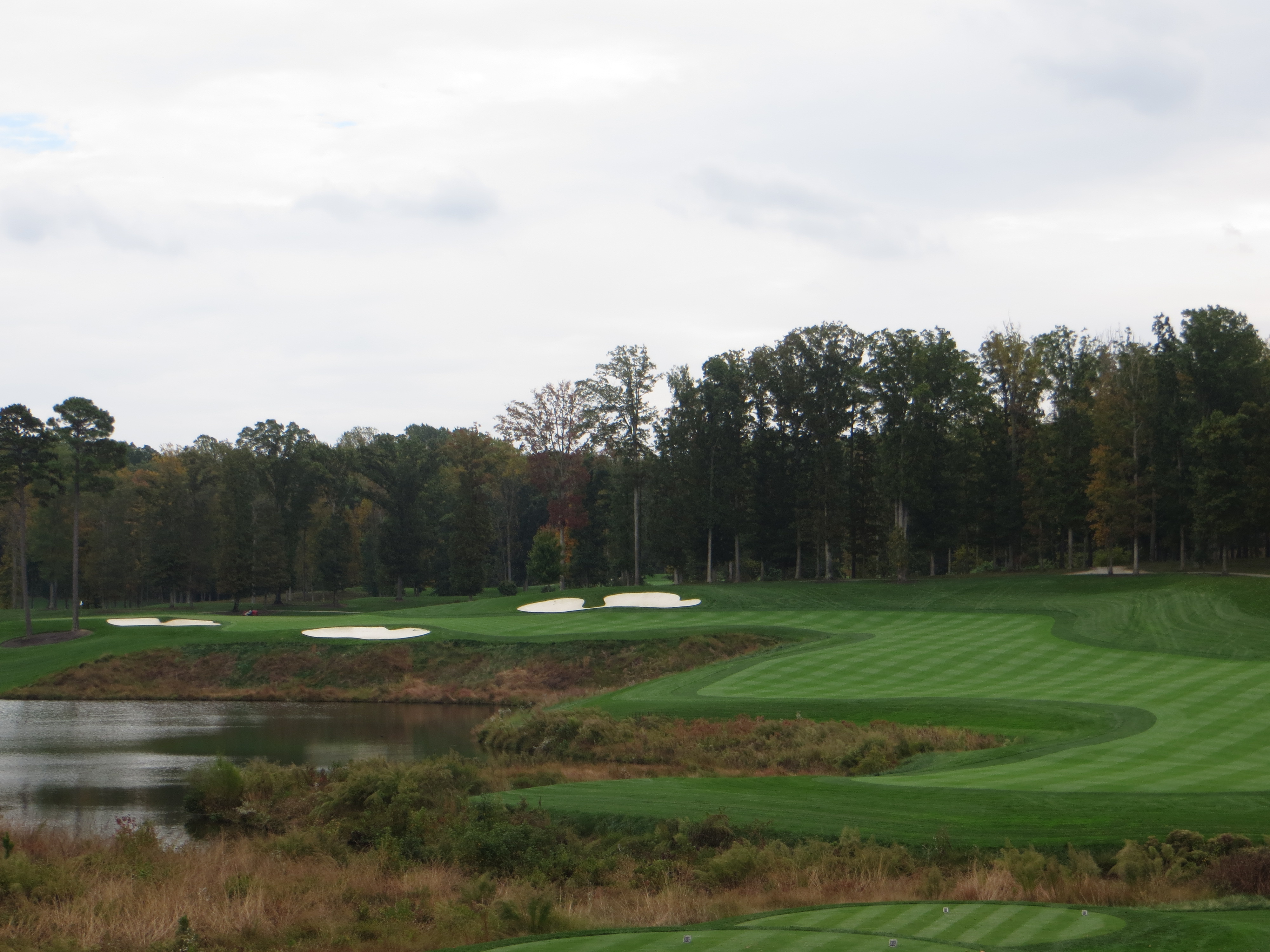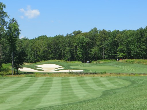 The most obvious characteristic is the generous use of sand throughout the course. This is an expensive design decision but, as you see on Fazio style courses, free form expansive bunkering is a visual accent that can be psychologically intimidating and provide tactical parameters that challenge the golfers as well. My wife said on about the eighth hole, there must have been no sand left in Virginia Beach once this course opened for play. Most interesting is that she played the entire 18 holes and was not in a single bunker-now that is good design.