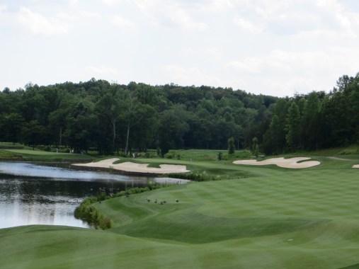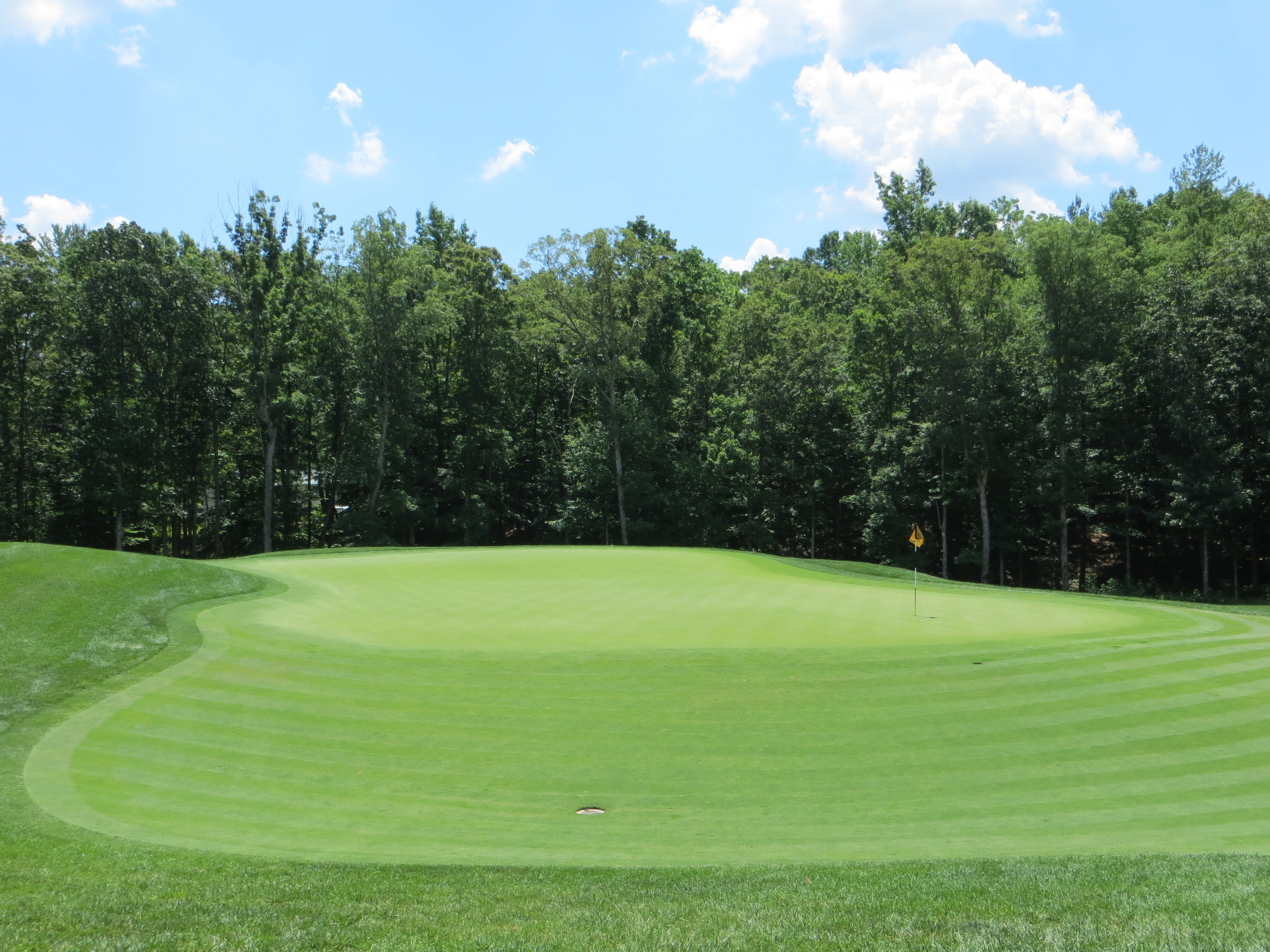 Spring Creek Golf Course was created to support a high end housing community about seventeen miles east of Charlottesville. When it came on line the economic infarction of the time seems to have upset real estate sales, yet this course has design quality and integrity that should make it a success as a fee course until that trend turns around. Ed Carton has considerable deputy experience with Tom Fazio and it shows in the presentation of this course. Like his mentor this course is visually pleasing and seems to fit into the regional topography very comfortably. The course has won some instant national recognition by the national golf magazines and has been favorably compared in reviews to the other jewel of Virginia, Lester George’s very private Kinloch Golf Club outside of Richmond. The difference is this place is totally accessible to the fee paying public.
