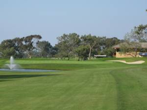 The opening hole is a perfect example of the design characteristics you will see all day. Standing on the tee of this five par the harrowing bunker on the right makes the driving area appear seriously constrained whereas it actually widens past the bunker to almost 70 yards of width and a warm welcome for almost any drive. In spite of this wide driving berth, position is very important depending on how you will negotiate the dry bed fissure on your second shot that bisects the last 140 yards of the fairway into the green. For a bump and run approach shot into the green, the second shot needs to be played from the left side of the driving area deftly into the narrow channel of mown fairway grass left of the fissure. Up the right off the tee allows for a longer second shot lay up to a more open area closer to the green but what is left will be a lawn dart pitching club across the hazard to a green steeply pitched toward you. If the pin is on the front right this can be a difficult approach and putt to negotiate. Throughout the day these types of decisions have to be anticipated so it is a matter of knowing where the pin is located and plotting an approach path that is appropriate.