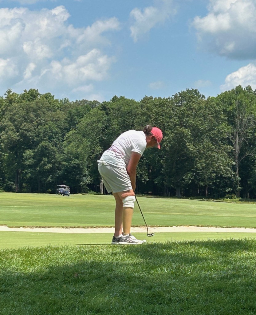 Kim Moore Putt On 14 Published July 10, 2025 at 1512 × 1858 in Kim Moore Putt On 14 Ladies overall champion Kim Moore coaxes one down the slope on the 14th