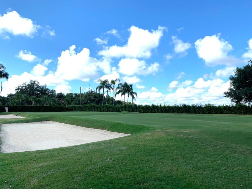 ML #5 Biarritz Green Published December 27, 2023 at 2016 × 1512 in ML #5 Biarritz Green The 5th Biarritz Par 3 green is full short grass in both sectors of the green protected by rectangular shaped sleeper bunkers flanking both sides.